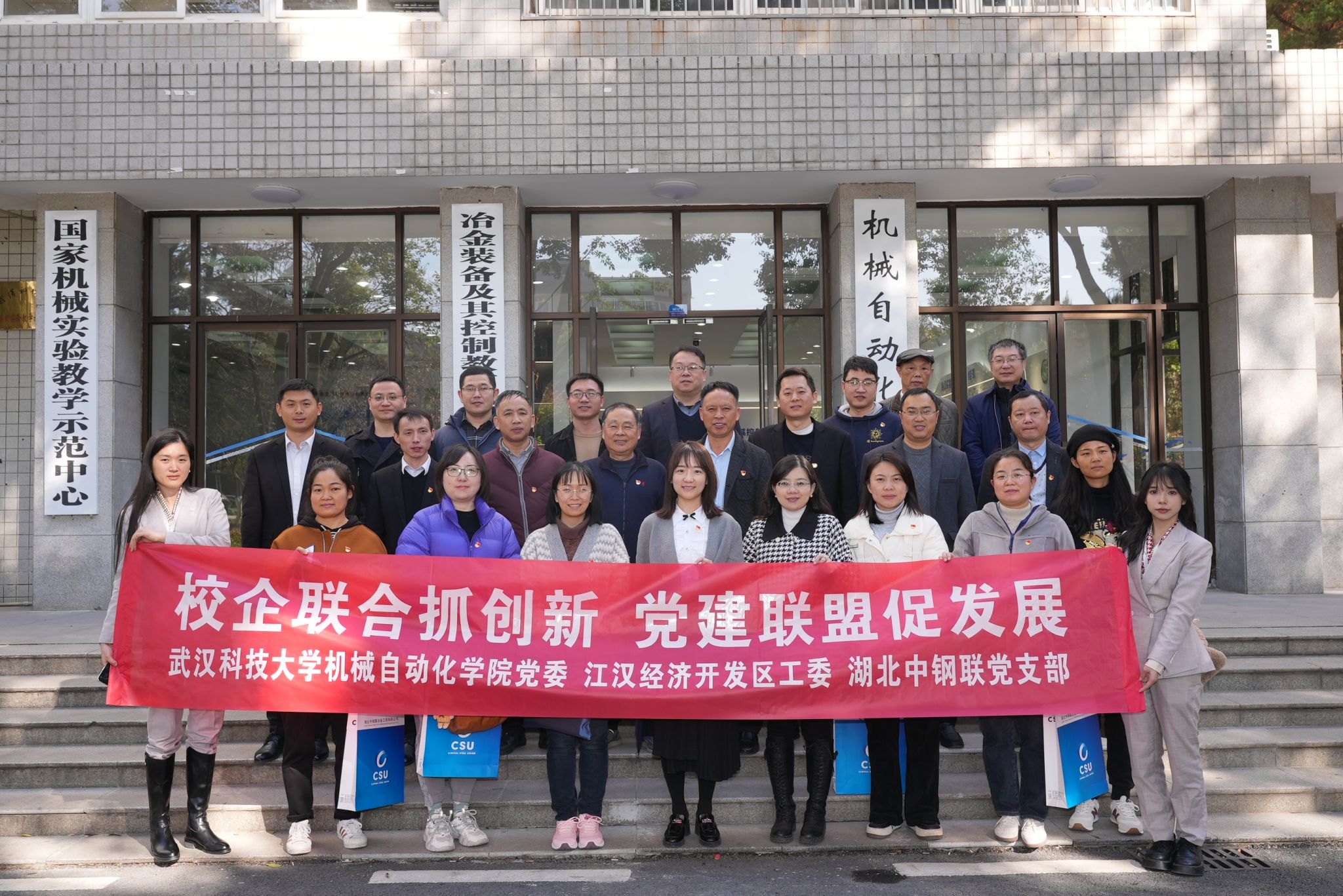 127日,为加强基层党建工作的交流与探索,提升党建引领,促进企业高质量发展。武汉科技大学机械自动化学院联合江汉创谷文化与科技融合示范集聚区党建联盟轮值主席单位湖北中钢联冶金工程有限公司共同开展了校企联合抓创新,党建联盟促发展的党建联盟活动。江汉经济开发区工委副书记戴莹、江汉经济开发区管委会办公室主任艾亮、江汉经济开发区两新党建指导员洪修平、赵挺松、潘晓光武汉科技大学机械自动化学院党委副书记瞿孝平、机械自动化学院副院长王蕾中钢联总经理何双林、江汉创谷文化与科技融合示范集聚区党建联盟单位代表等共 30 余人参加了此次活动。