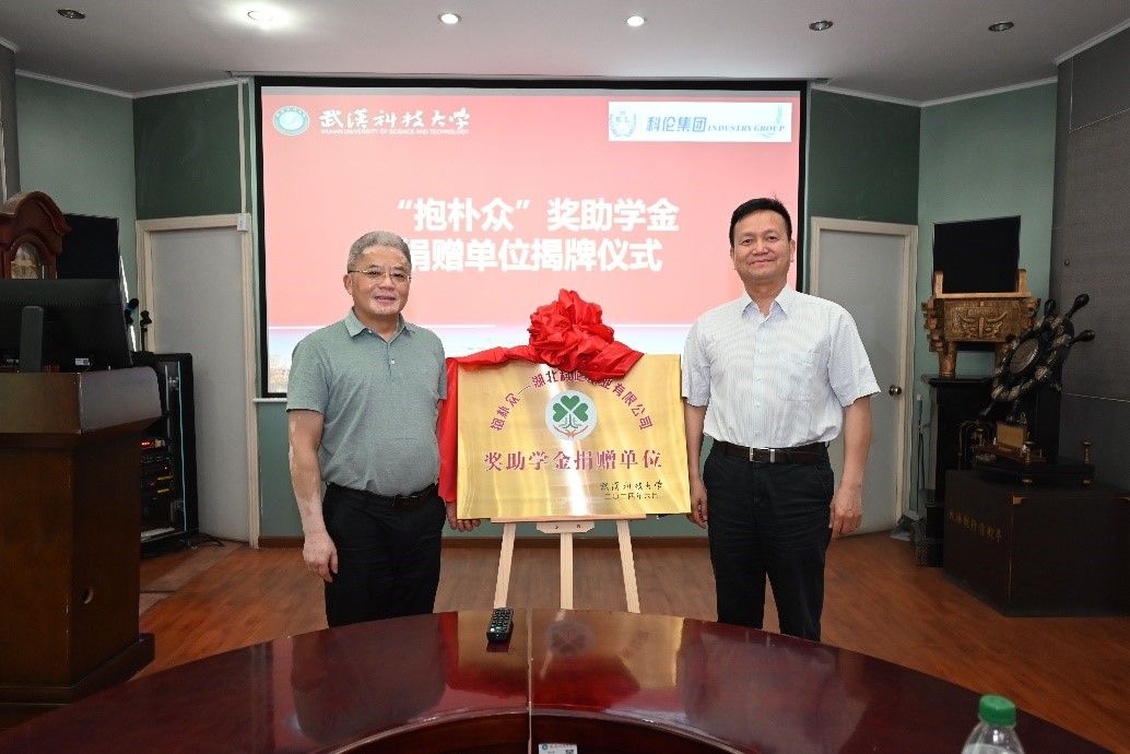 高登银、余淑均共同为“抱朴众—湖北科伦药业有限公司奖助学金捐赠单位”揭牌。